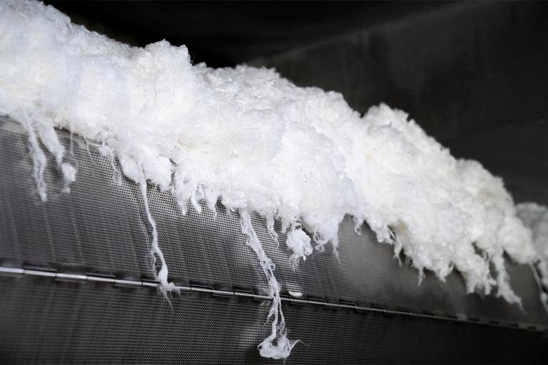 Lyocell is a regenerated cellulose fiber made from the pulp of wood chips. The making of lyocell starts from harvesting wood, mostly from eucalyptus trees due to their fast growth, but it can also derive from oak, birch, spruce, pine, and beech. The wood is broken down into chips and dissolved by an organic solvent called amine oxide to create a soggy pulp, the mixture is then processed through spinnerets to create fibers that in turn are spun into yarns. With a silky, wet handfeel and lustrous sheen, the fiber lends a softness, drapability and moisture absorbency.