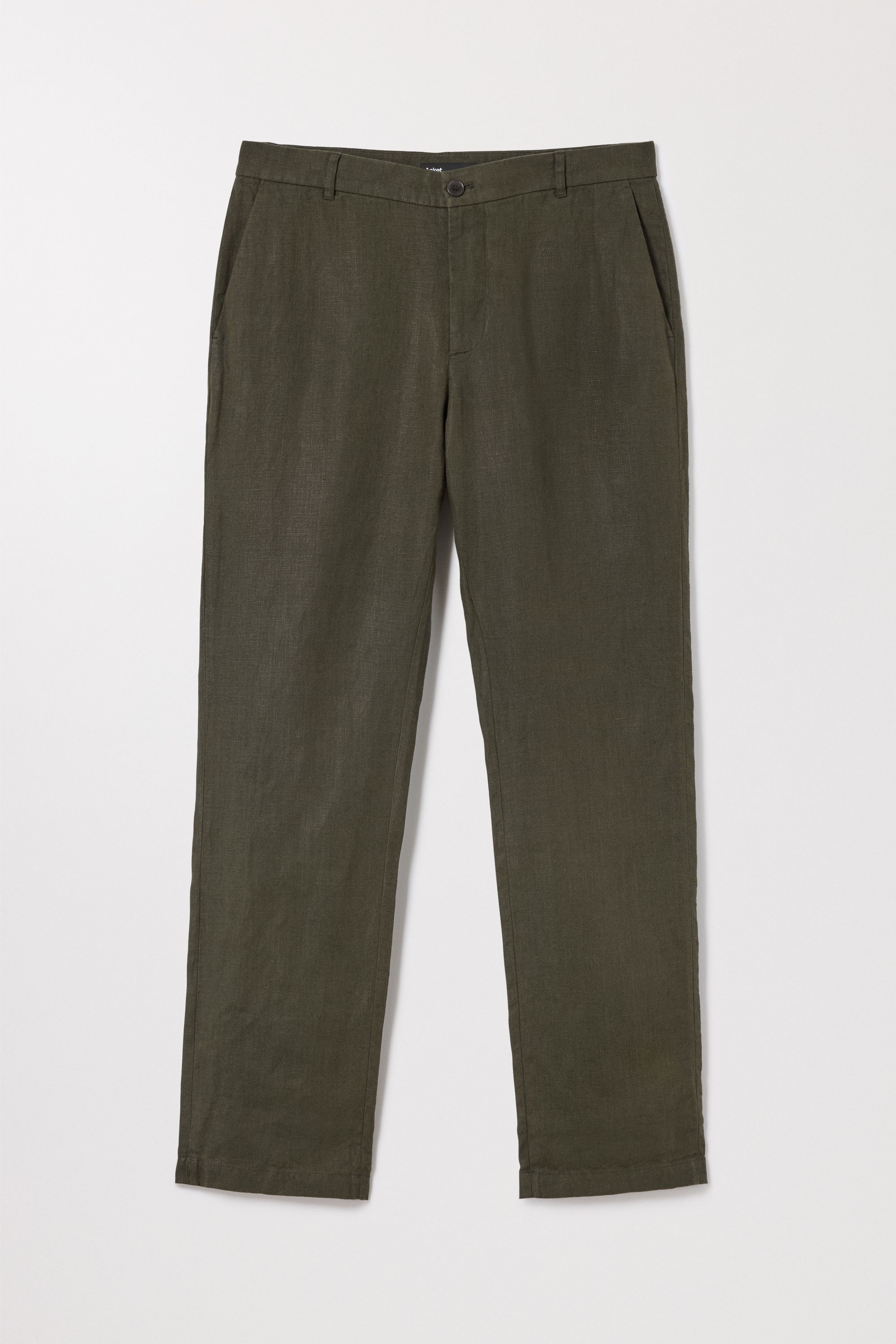 100% Belgian flax. Breezy, midweight 210gsm plain weave fabric. Woven, cut and sewn in Portugal. Regular fit with straight cut leg. Available in waist and length options.