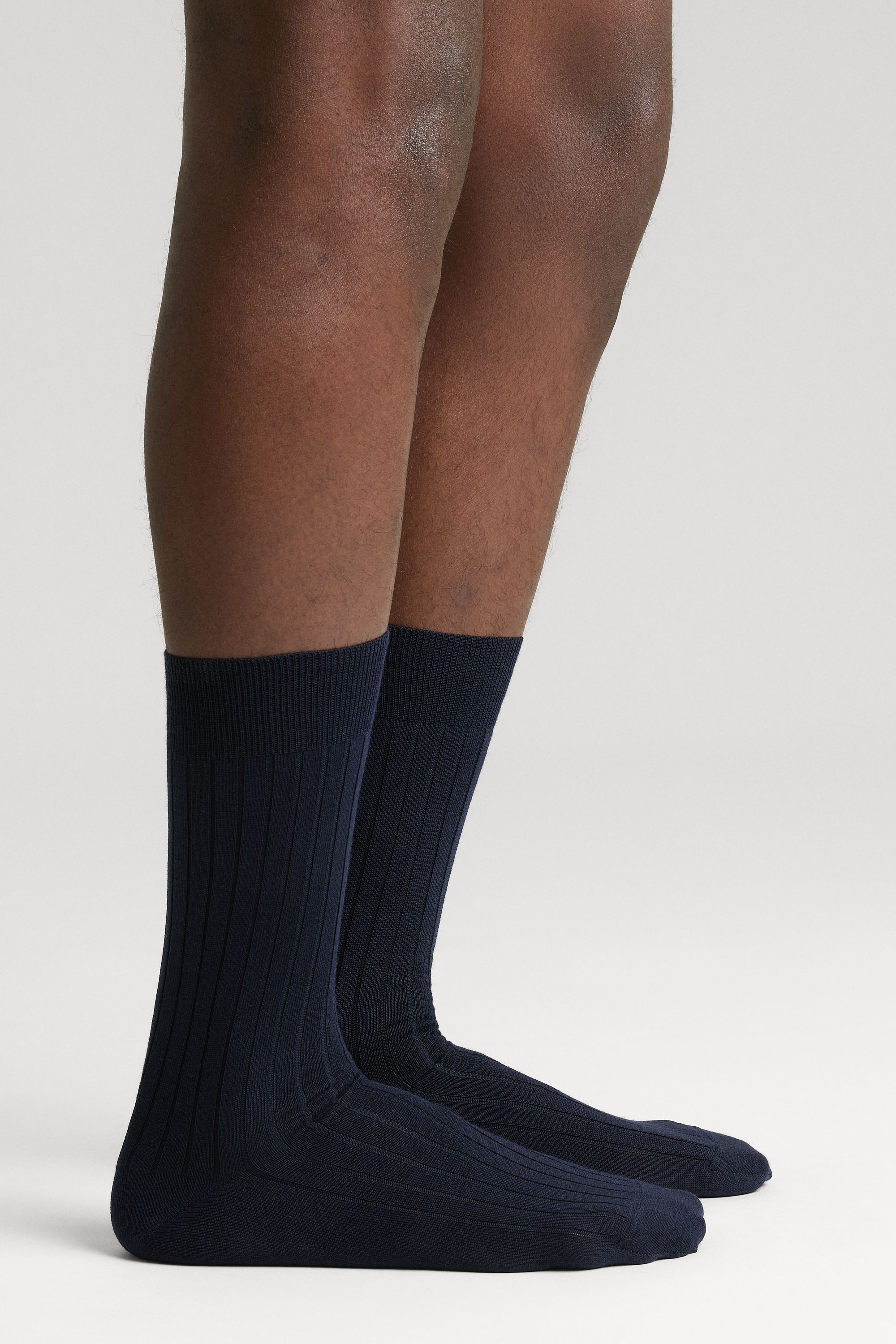 80% extra-fine Merino wool, 20% polyamide. Ribbed mid-length sock ending on the middle of the calf with reinforced heel and toes. Tollegno 1900 yarn, knitted and sewn in Italy. Also available in packs of three.