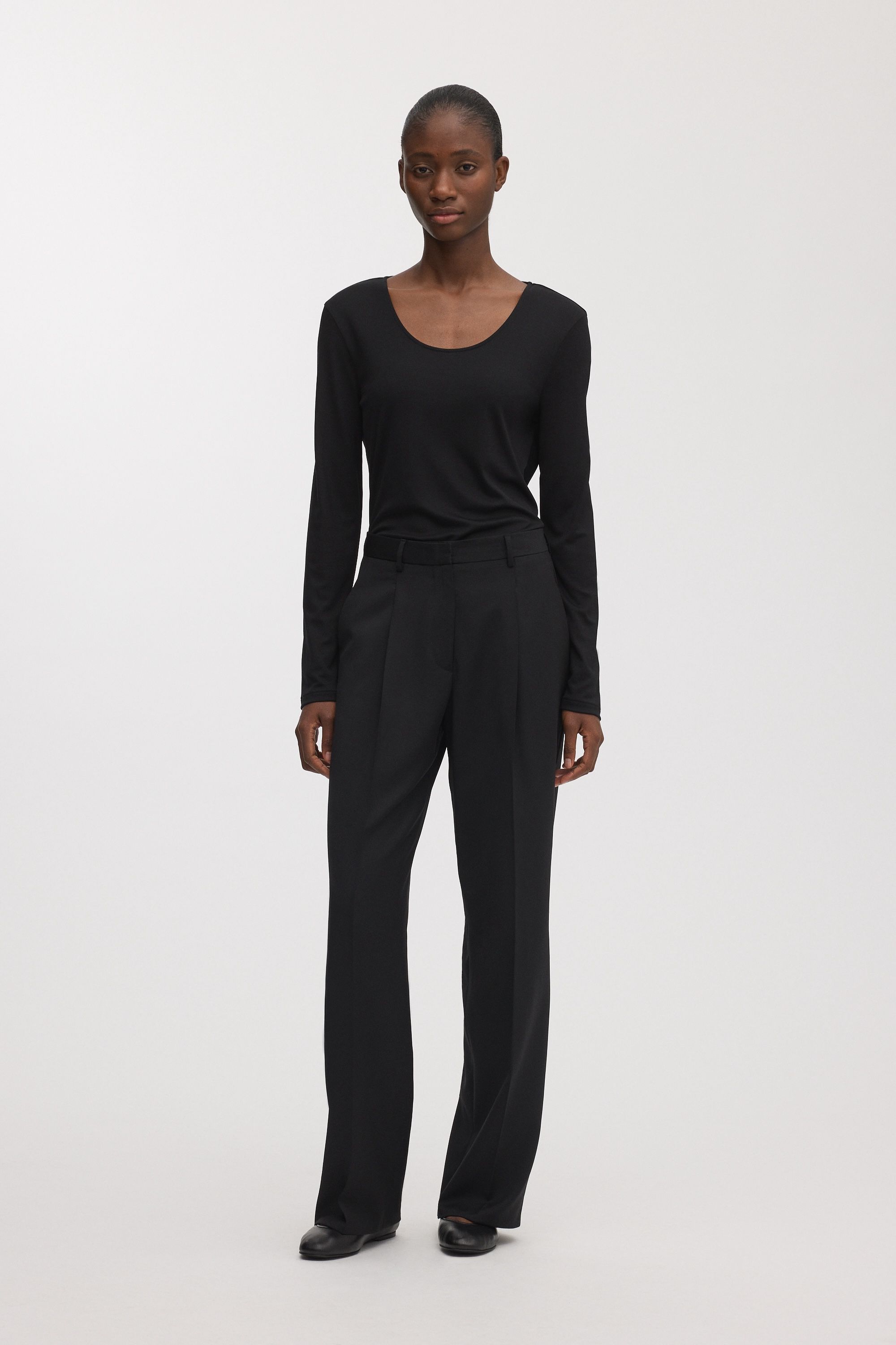Cut from a subtly lustrous, slippery and breathable custom-developed lyocell jersey, our long sleeve scoop neck top gently frames the collarbone and offers a refined, effortless silhouette.