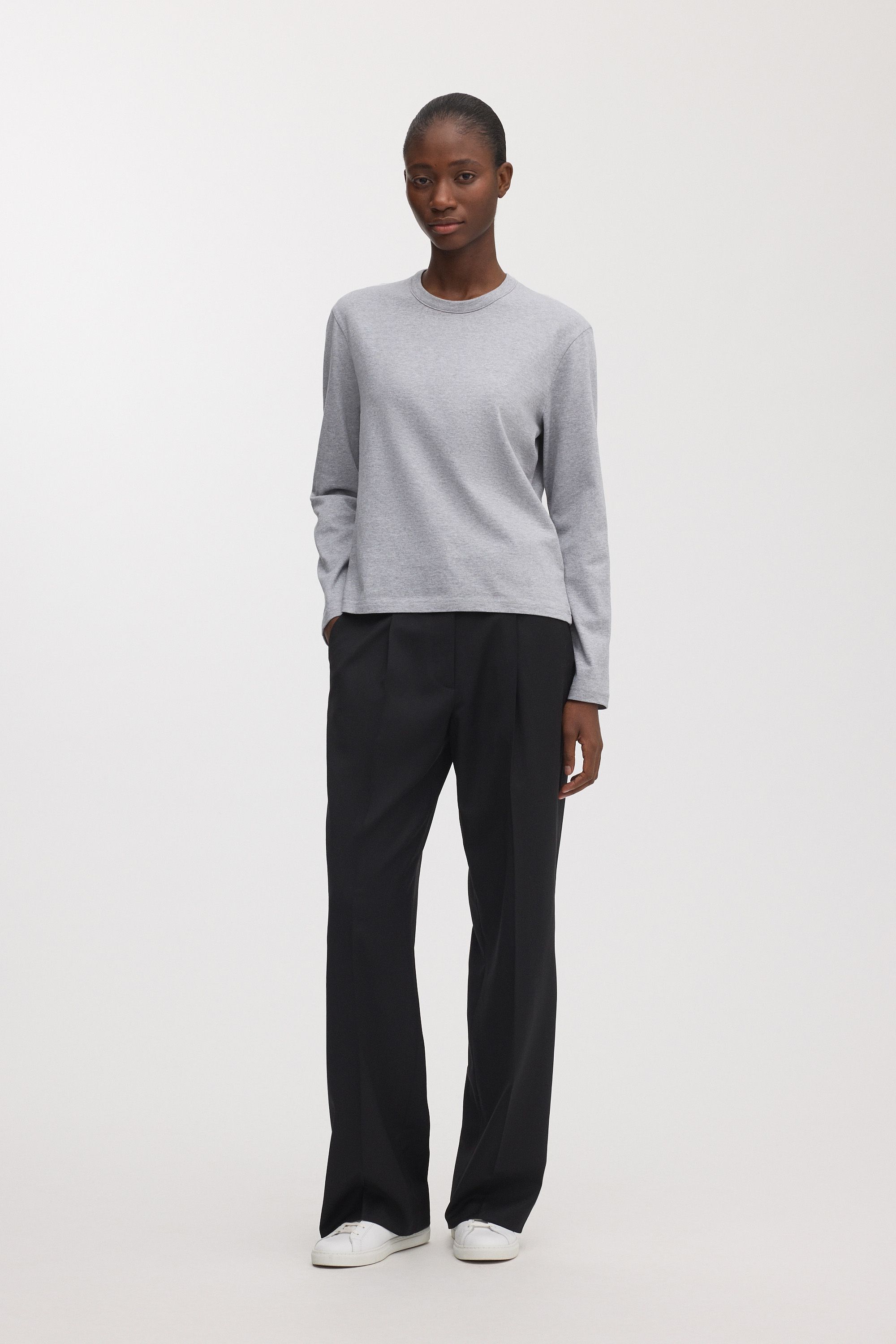 The Long Sleeve T-Shirt is made from a heavier long staple organic cotton jersey with a dry handle, accentuated with a twin needle stitched, rib-knitted neckline for durability and framing.